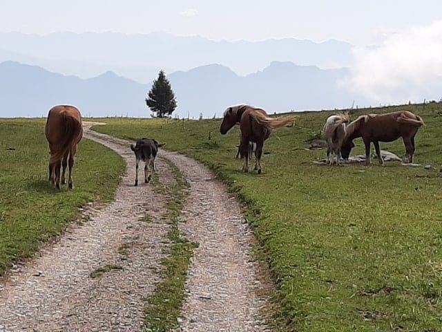 La strada prosegue con qualche saliscendi, ma sempre permettendovi di ammirare il lago, poi piega verso il piano della Nana. Il blu del lago sparisce, per lasciare posto a tutti i colori dell’arcobaleno e alle loro sfumature, sotto forma dei fiori che sbocciano in questo altopiano dalla bellezza estasiante. Nel periodo primaverile e di inizio estate, questo pianoro, diventa una vera e propria, tavolozza gigante. Noi ci inoltriamo fino al limite sud, appena sotto la cima Uomo. Ammiriamo il panorama, ascoltiamo le marmotte fischiare, ci rilassiamo con i profumi e i colori dei fiori che ci circondano. Riusciamo ad assaggiare i mirtilli che crescono da queste parti, non senza sporcarci mani e labbra del blu intenso di questi frutti, che ci fa tornare un pò bambini.