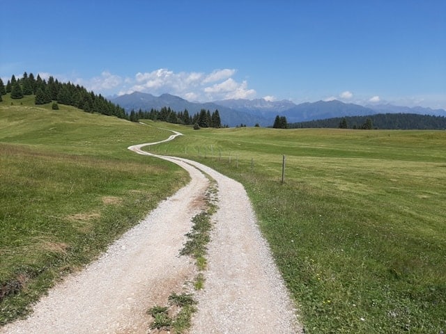 Rientriamo verso la malga per pranzare con i prodotti a metri zero e dopo un ultimo sguardo verso il piano, ci rimettiamo in sella per tornare. La nostra t-tronik con ruote da 29 e ottimi freni a disco da 200 mm, ci permette di affrontare la discesa in tutta sicurezza, malgrado qualche ostacolo, che viene superato senza problemi. Lungo la strada per tornare, facciamo una piccola deviazione fino ad un’altra malga, abitata tutto l’anno, dove è possibile acquistare sia il formaggio di latte vaccino che di capra … un piccolo ricordo slow food, per sognare questi prati una volta tornati in paese.
