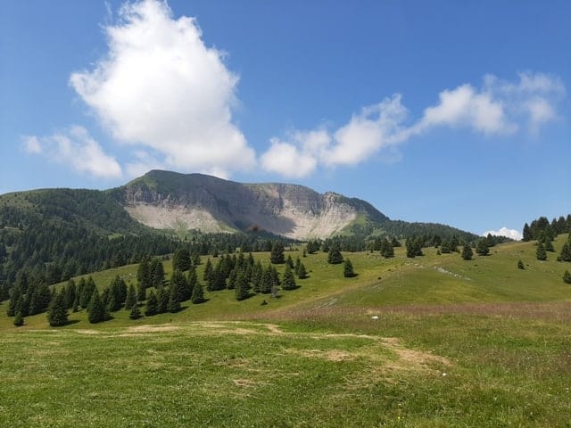 La strada prosegue con qualche saliscendi, ma sempre permettendovi di ammirare il lago, poi piega verso il piano della Nana. Il blu del lago sparisce, per lasciare posto a tutti i colori dell’arcobaleno e alle loro sfumature, sotto forma dei fiori che sbocciano in questo altopiano dalla bellezza estasiante. Nel periodo primaverile e di inizio estate, questo pianoro, diventa una vera e propria, tavolozza gigante. Noi ci inoltriamo fino al limite sud, appena sotto la cima Uomo. Ammiriamo il panorama, ascoltiamo le marmotte fischiare, ci rilassiamo con i profumi e i colori dei fiori che ci circondano. Riusciamo ad assaggiare i mirtilli che crescono da queste parti, non senza sporcarci mani e labbra del blu intenso di questi frutti, che ci fa tornare un pò bambini.