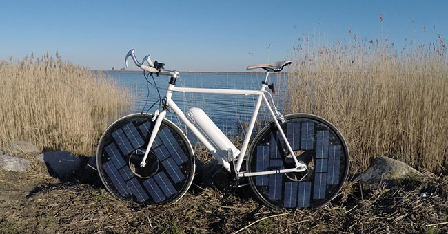 E’ idea di un ingegnere danese, Jesper Frausig, una bici alimentata da energia solare. Il modello, ribattezzato Solar Bike, possiede dei pannelli solari integrati nelle ruote che producono l’energia pulita necessaria per ricaricare la bici. Non serve quindi il collegamento alla rete elettrica per ricaricarsi. La Solar Bike parcheggiata in un luogo ben esposto ai raggi solari, grazie ai pannelli fotovoltaici, riesce a produrre l’energia che occorre alla batteria per recuperare il 100% della sua carica. Per quanto riguarda l’autonomia, la bici solare può percorrere con un pieno elettrico fino a 70 chilometri e raggiungere una velocità massima di 50 chilometri orari. Le celle solari sono state ottimizzate per poter produrre energia anche quando il cielo è parzialmente coperto.