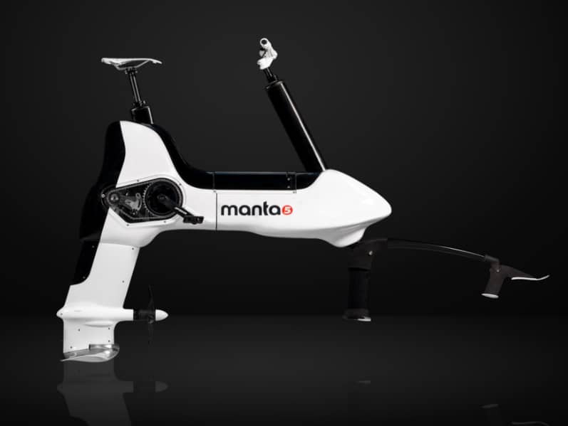 Hydrofoiler XE-1 è la e-bike che può essere utilizzata sull’acqua realizzata dal brand neozelandese Manta5. Prodotta in fibra di carbonio, questa idrobike è leggera ma robusta, spinta da un motore elettrico da 400 Watt che consente di raggiungere una velocità massima di 15-20 km/h. È dotata di un’ala posteriore della lunghezza di 2 metri ed un’ala anteriore lunga 1,2 metri. È possibile ricaricare la batteria con qualsiasi presa standard, una sola ricarica offre fino ad un’ora di pedalata assistita per una persona con peso di 85 kg.