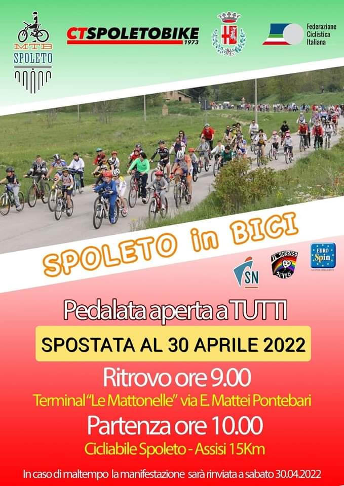A dire il vero iniziamo con la fine del mese di aprile, perché è stato spostato al 30 aprile la “Spoleto in bici” pedalata aperta a tutti per fare 15 km della Spoleto – Assisi. Organizzata da Mtb Spoleto e CT Spoleto Bike ha l’obiettivo di far conoscere parte di questi 51 km totali di questo splendido percorso composto da 19 gallerie, 24 ponti e viadotti, 13 caselli da Spoleto a Norcia. Il tracciato segue la vecchia ferrovia che congiungeva Spoleto a Norcia, chiamata anche il Gottardo dell’Umbria. Inaugurata nel 1926, ha visto la sua ultima corsa nel 1968.