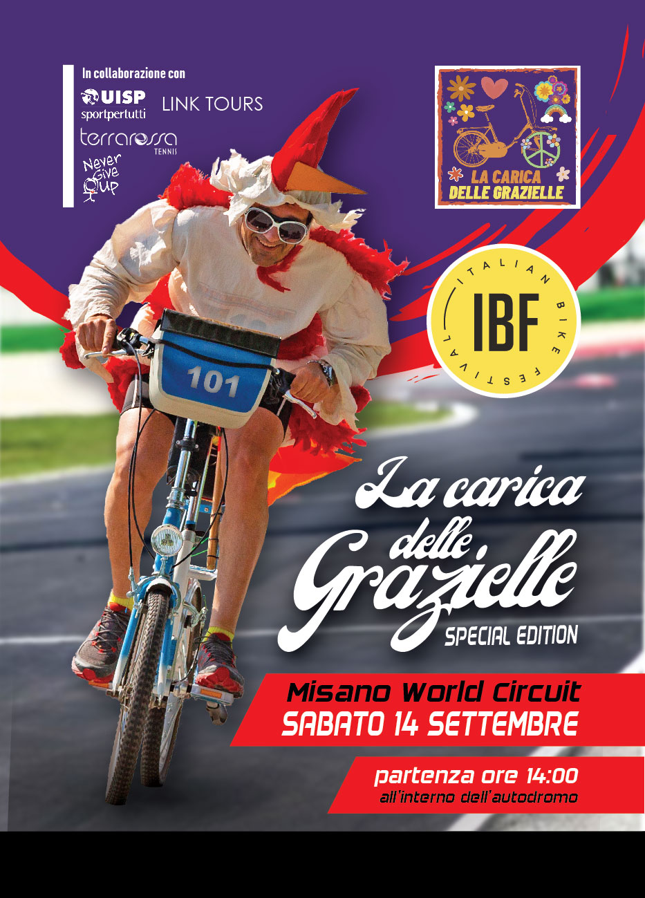 Edizione speciale con partenza dall’autodromo di Misano. Una pedalata leggendaria in sella alla mitica “Graziella” o una delle sue cugine. Questo evento goliardica inizia con un giro dell’autodromo e prosegue lungo un pittoresco percorso di circa 35 km. I ciclisti attraverseranno scorci panoramici, fino a giungere a un locale sul lungomare di Misano per gustare un delizioso aperitivo, durante il quale verranno premiati i look più stravaganti e originali. lacaricadellegrazielle@gmail.com