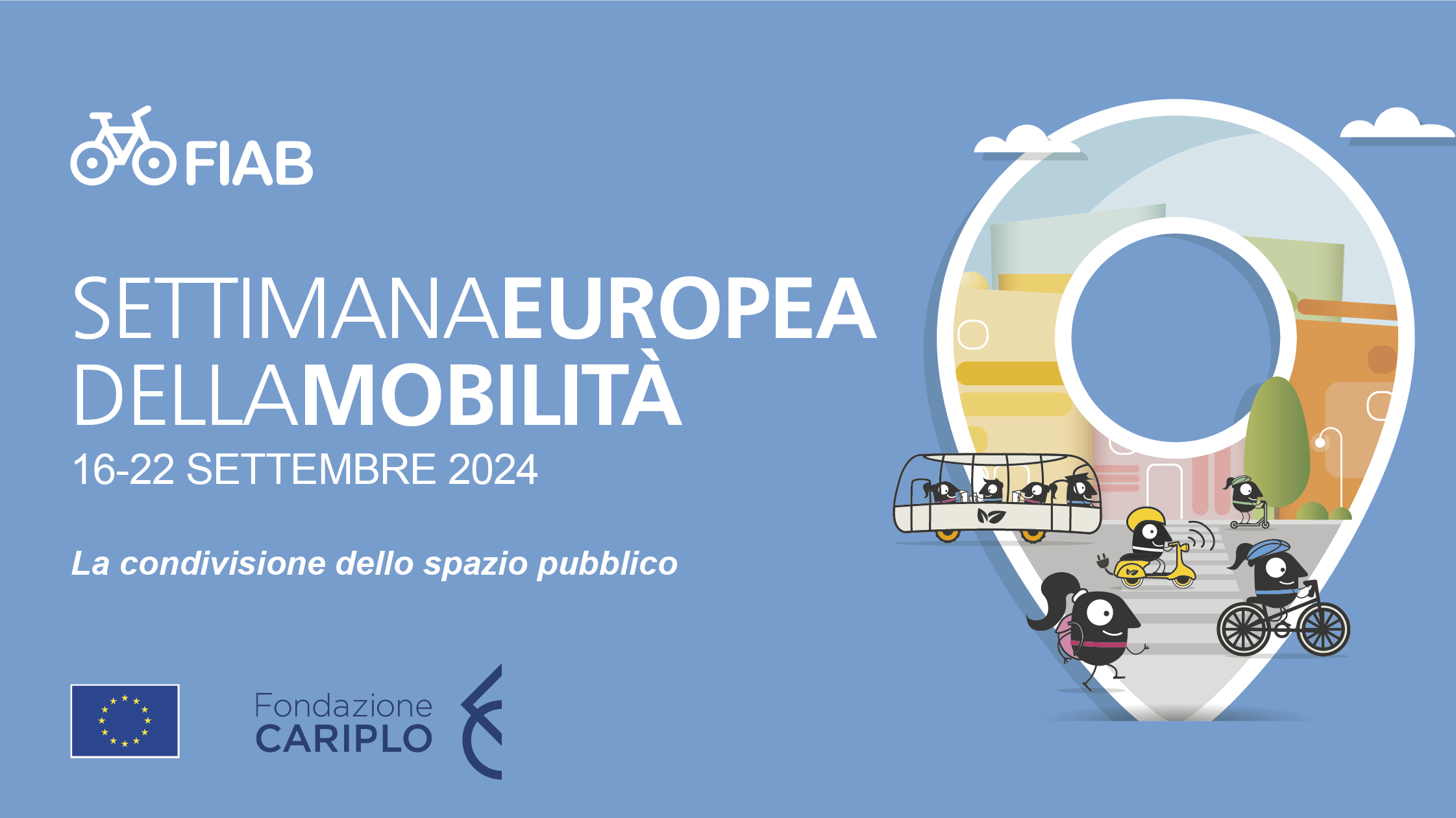 Per l’edizione 2024 la Commissione Europea ha scelto come tema la condivisione dello spazio pubblico, quattro sono le aree tematiche e di intervento: vivere lo spazio pubblico in modo diverso, riqualifichiamo insieme lo spazio urbano, strade scolastiche – creare uno spazio sicuro per gli spostamenti attivi, pianificazione e progettazione di strade più sicure.