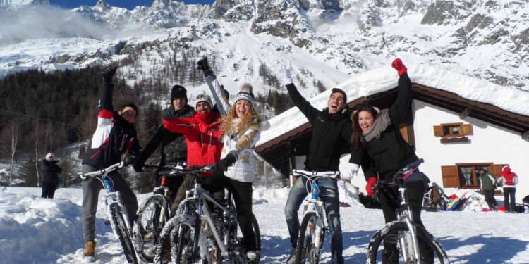 The snow can’t stop us! This seems to be the “say” of snow bikes, a trend that is becoming more “foot” in Italy. To anticipate all of the Valle D’Aosta. In Courmayeur in Val Ferret, the program includes starting each day at 12 from Planpincieux (1580 meters) and arriving at Lavachey (1650 meters). The proposed route is 5 miles, in front the magnificent chain of Mont Blanc and the Col Ferret.