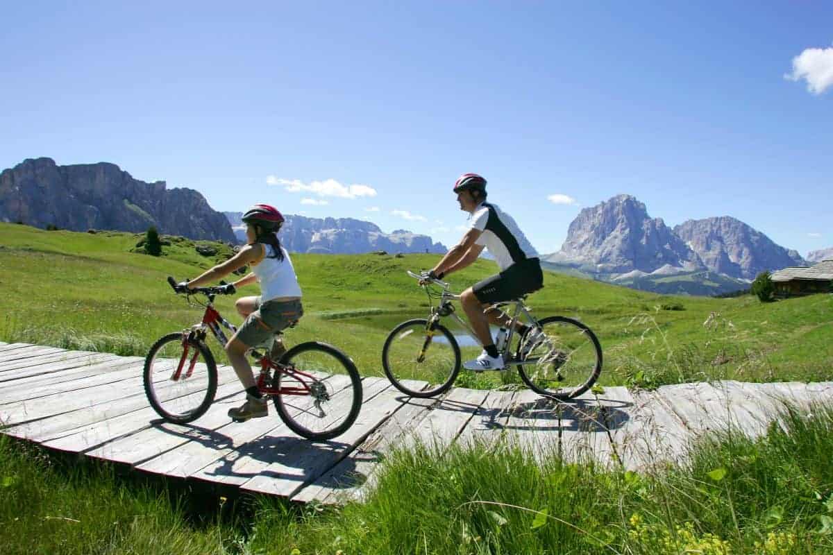 Panorama Santa Cristina (e-bike) – 28 chilometri: si caricano le bici sulla cabinovia dell’Alpe di Siusi e si raggiunge la stazione a monte, a circa 2.000 metri con vista sulle Dolomiti (Scillia, Denti di Cavallo, Sassopiatto e Sassolungo). Da qui una facile discesa su gravel poi asfalto sulla strada verso Saltria per raggiungere la Malga Rauchhütte e Saltria. Da qui si sale verso Monte Pana e si arriva alla pista ciclabile lungo la vecchia ferrovia raggiungendo La Pozza e rientrare finendo il loop.