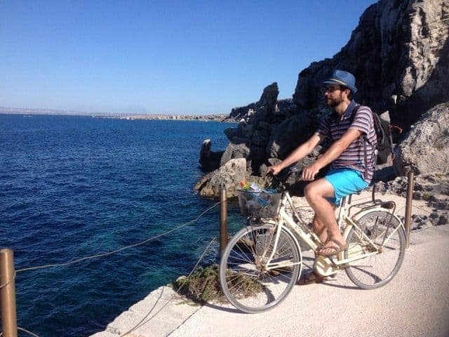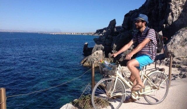 una selvaggia piccola baia con fondale sabbioso e acque cristalline, che, come tutte le spiagge più famose, ha un comodo accesso e coste rocciose rese “soffici” da foglie secche di posidonia portate qui dalle mareggiate. Un toccasana per sdraiarsi comodamente anche sugli scogli. Tra una pedalata e un tuffo sarà bene parlare a questo punto anche del pranzo. Per non appesantirsi, consiglio di optare per una limonata fatta con veri limoni di Sicilia, un pane “cunzato” (panino ripieno di pomodori secchi, capperi, acciughe, olio, ricotta salata) e una colorata macedonia, da consumare in uno dei (non troppo numerosi) chioschi dell’isola.