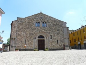 Si esce da Medesano sulla ciclabile che affianca la provinciale 357 R, ma l’avvicinamento a Fornovo di Taro è un po’ mosso: dopo Felegara le indicazioni mandano a un sottopasso dell’autostrada che è sterrato, sconnesso e pure sbarrato, per cui bisogna portare la bici a mano. Stessa cosa poco dopo, sulla ciclabile dell’area golenale del Taro, davanti ai gradini di un ponticello sulla ferrovia. Di seguito si costeggia una cava, si sale una rampa e si fa un pezzo in contromano. Insomma ci si arriva, ma con attenzione. Il Taro si attraversa sulla ciclabile del ponte e dopo poca strada si arriva al duomo di Santa Maria Assunta. E’ una costruzione semplice, con una facciata a capanna fatta (e nel tempo rifatta) per riparare e proteggere i pellegrini che si fermavano lì, giusto a metà strada tra la pianura e gli appennini, magari dopo aver guadato il fiume a piedi.