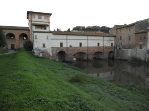 E’ del 1550 il successivo ponte Mediceo, struttura articolata che comprendeva il forte, la pescaia, una fattoria e ovvio l’osteria. Tutto questo oggi è diventato l’ostello della gioventù, e un po’ spiace per l’osteria. Si esce dal ponte coperto e si prende il viale alberato che accompagna verso Fusecchio, che sorge su un guado dell’Arno, in prossimità dell’Usciana e nelle vicinanze della Francigena, per dire di quanto era importante questo centro. Il ponte sull’Arno era “l’Arne Blanca”, l’Arno bianco, ancora Sigerico.