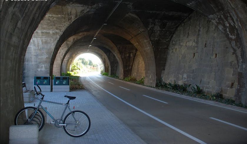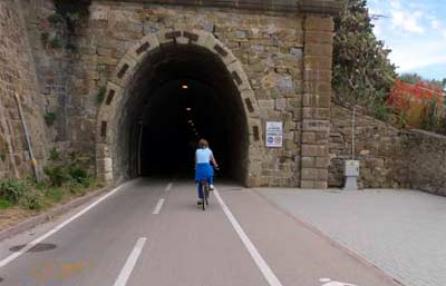 Al termine del lungomare la ciclabile prosegue attraversando una galleria illuminata particolarmente lunga (circa 1.500 metri circa), per questo motivo può essere fredda ed è quindi meglio portarsi un giubbotto antivento. All’uscita è stata attrezzata un’area relax, con panchine e giardinetti a strapiombo sul mare. Sotto la pista è raggiungibile una poco conosciuta spiaggia di scogli e ciottoli, allo sbocco di un piccolo rio, accessibile tramite una ripida scalinata che conduce fino alla riva.