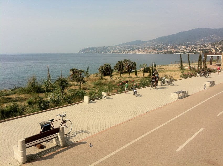 Al termine dell’ultima galleria, la ciclabile corre lungo la zona balneare dei Tre Ponti, un’area di spiagge molto frequentata nel periodo estivo, prima di tuffarsi a Sanremo, dove attraversa il cuore della città sfruttando la posizione del vecchio tracciato ferroviario. I ciclisti e i pedoni devono prestare particolare attenzione ai vari incroci delle strade urbane che attraversano la pista, alle quali va la precedenza.