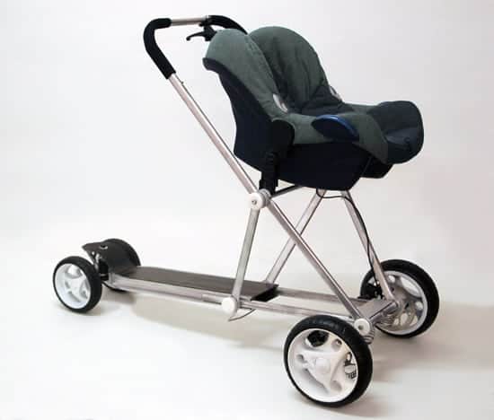 Ma ci sono anche i monopattini con passeggino! Valentin Vodev firma la Roller Buggy, una carrozzina – monopattino. Il passeggino può essere regolato in una serie di posizioni, è dotato di un sistema di frenatura idraulico con due freni a disco anteriori che assicura arresti rapidi.