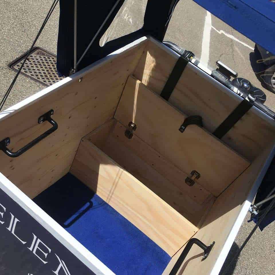 TrikeGo è un triciclo da trasporto che nasce dall’attenzione per la mobilità sostenibile e incentiva lo spostamento a pedali di persone e merci in città. Può trasportare fino a 150 kg e può essere personalizzato per utilizzi specifici e con copertura per la pioggia.