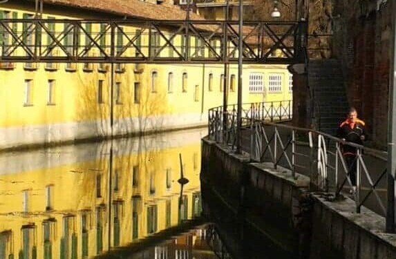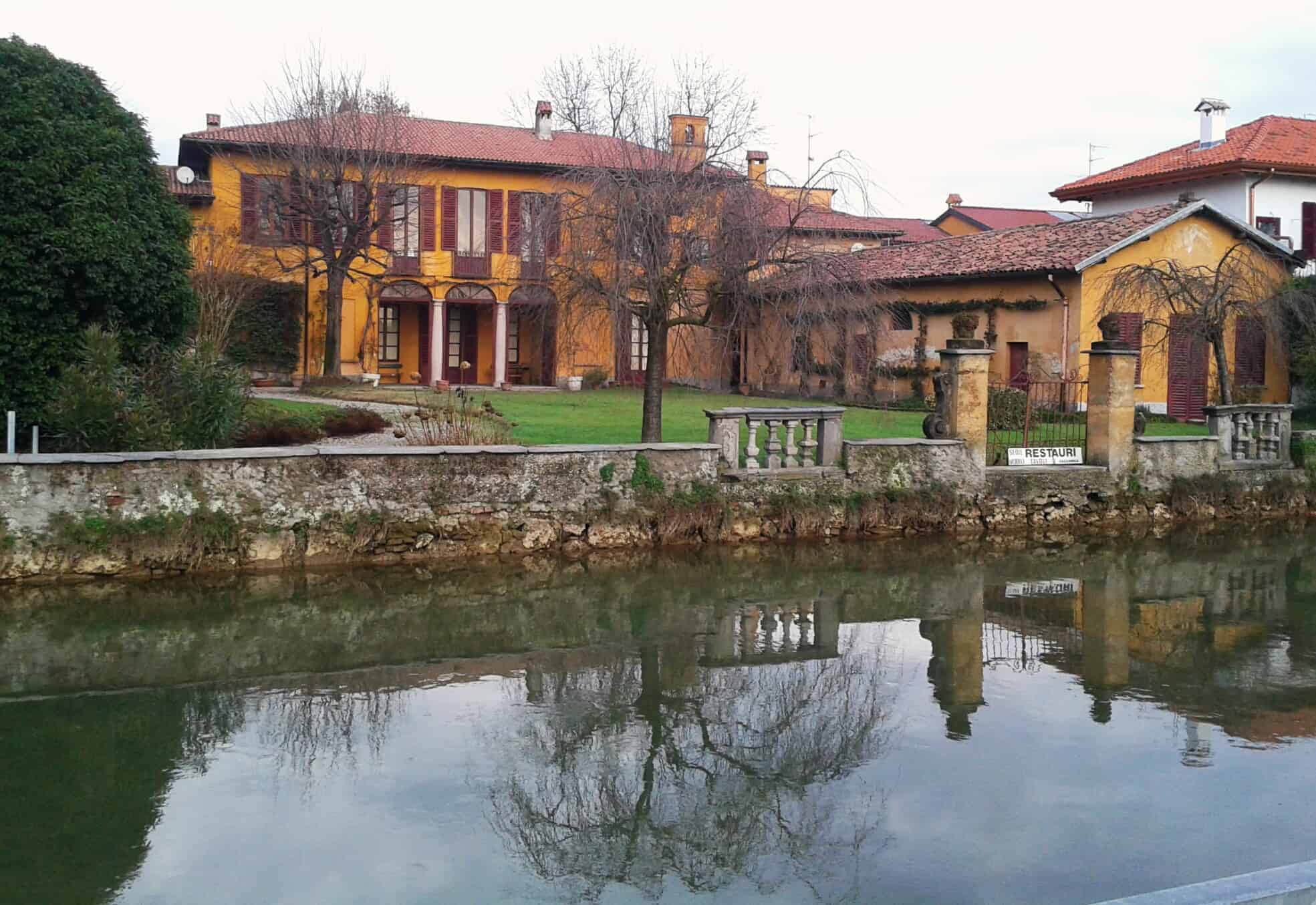 A Cologno Monzese e Vimodrone la ciclabile corre di fianco ai prati coi giochi per bambini e alle cascine con le galline, che volendo sono più interessanti dei giochi. Gli spazi sono più ampi, si rivede l’orizzonte si percepisce di essere all’inizio di un viaggio che è anche nella storia e nella cultura della Lombardia. Dall’ altra sponda del Naviglio si specchiano le ville signorili dell’aristocrazia meneghina: Villa Cazzaniga e Villa Alari Visconti, già verso Cernusco, settecentesca “villa di delizia” mentre poi salendo si incontreranno Villa Borromeo e Villa Melzi d’ Eril, dove ha soggiornato Leonardo da Vinci che il Naviglio lo ha studiato, dipinto, vissuto.