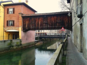 Fino a Gorgonzola per esempio, dove la pista si restringe proprio davanti a una curiosa costruzione di legno,