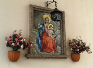 che sovrasta il Naviglio come un ponte ma è chiuso come un’abitazione, con finestre e vani abitativi all’interno e che collega villa Busca con un condominio provato. La curiosità di cercare l’accesso a questo edificio porta a scoprire uno splendido mosaico di una Madonna con Bambino, giusto qualche decina di metri a sinistra.