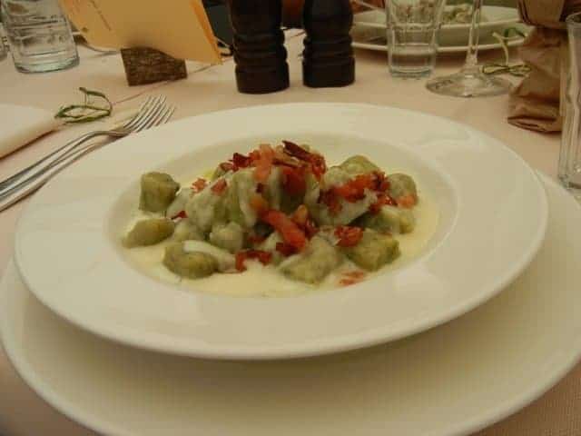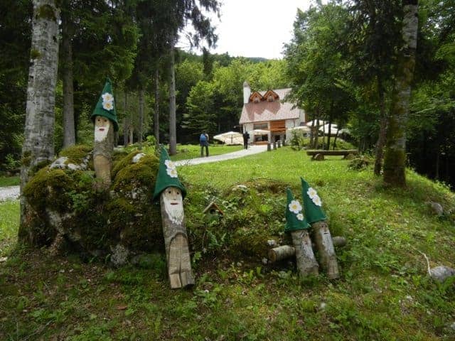 Sulla sinistra si arriva al bellissimo Rifugio Vallata, circondato da gnomi/alpini ricavati dai tronchi, che offre anche servizio di ristorazione di eccellenza che vi invitiamo a provare. Vi consigliamo di iniziare con Hugo, il cocktail a base di sambuco e prosecco, proseguire con gli gnocchi al tarassaco di montagna e montasio, continuare con la polenta di grano di Barcis e Petucia, per finire con i dolci del rifugio.