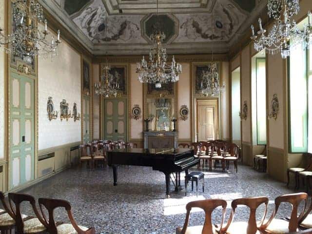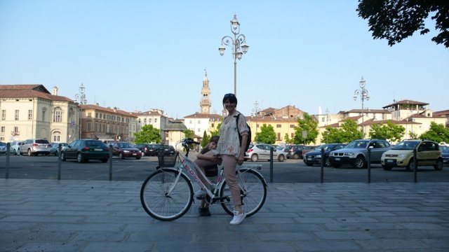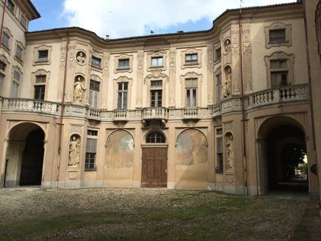 Stupiti e carichi di storia riprendiamo la nostra pedalata e qua e là ci fermiamo fuori da palazzi signorili che nascondono al loro interno scaloni, affreschi, volte e luoghi dove si è fatta la storia dei Gonzaga e dei Savoia. Uno di questi è Palazzo Gozani Treville che ospita l’Accademia Filarmonica della città. Vale la pena suonare il campanello e chiedere di entrare … ma lasciate rigorosamente fuori le biciclette, non sono le benvenute all’interno!