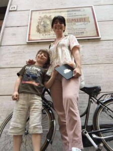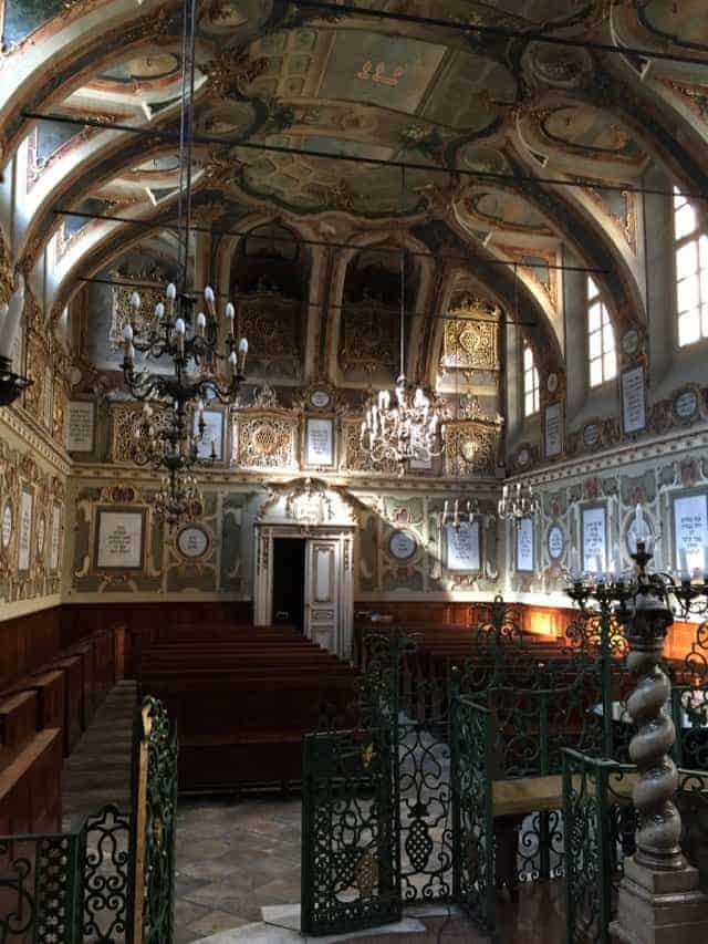Ad un certo punto imbocchiamo una via stretta: ad attenderci sull’uscio di un portoncino la Signora Ottolenghi, moglie del Presidente della Comunità ebraica di Casale Monferrato. Ci fa entrare in un cortiletto dove si staglia un bellissimo melograno e ci racconta che la comunità ebraica di Casale era molto numerosa, si parlava di 1000 ebrei su 20.000. Ad un certo punto ci invita ad entrare nella Sinagoga del 1595, luogo unico nel suo genere e ben nascosto com