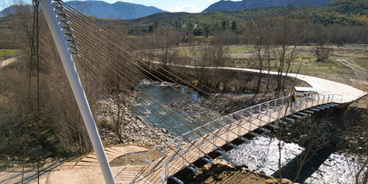 Attraversando la macchia mediterranea, tra oleandri, olivastri e altre essenze tipiche, si raggiunge il torrente Calusia, affluente del Neto, dove una passerella in legno e acciaio, sostenuta da un’antenna e stralli, consente di attraversarlo con una campata di 30 metri. Costruita con materiali eco-compatibili, la Ciclopedonale della Val di Neto è un esempio virtuoso di turismo sostenibile, che permette di scoprire il territorio con un approccio rispettoso dell’ambiente.