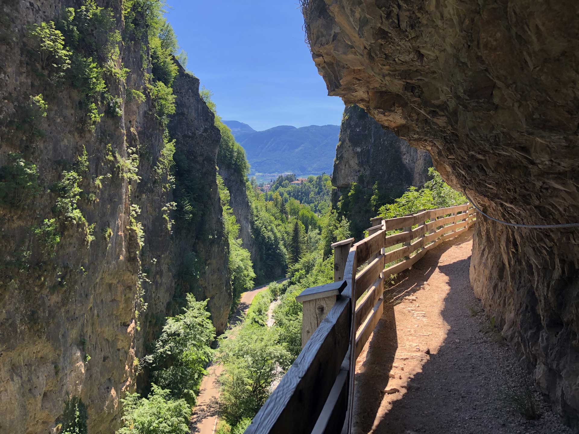 Il mio itinerario continua con una deviazione emozionante: il Canyon Rio Sass, un percorso tra passerelle sospese, scalette e cascate che si snoda nel cuore della roccia. Anche se non si può attraversare in bici, vale la pena parcheggiarla per un’ora e lasciarsi sorprendere da questo spettacolo naturale.