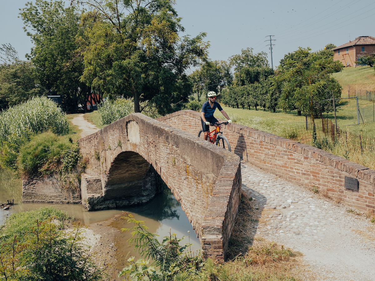 Pedalando lungo il Canale di Reno, raggiungerai Bologna, dove, all’altezza del sostegno della Bova, imboccherai la Ciclovia del Navile. Da qui, inizierai la tua esplorazione della pianura bolognese, tra parchi rigogliosi e antichi manufatti idraulici. A Castel Maggiore, potrai ammirare i resti del Sostegno di Castagnolo Maggiore, costruito da Ercole Bentivoglio nel 1497, un’opera ingegnosa che testimonia l’importanza del canale per l’economia locale. Proseguendo verso nord, raggiungerai Bentivoglio, un borgo legato indissolubilmente al Canale Navile. Qui, potrai visitare Villa Smeraldi, un’affascinante dimora che ospita il Museo della Civiltà Contadina, un prezioso scrigno di memorie sulla vita rurale tra Ottocento e Novecento.