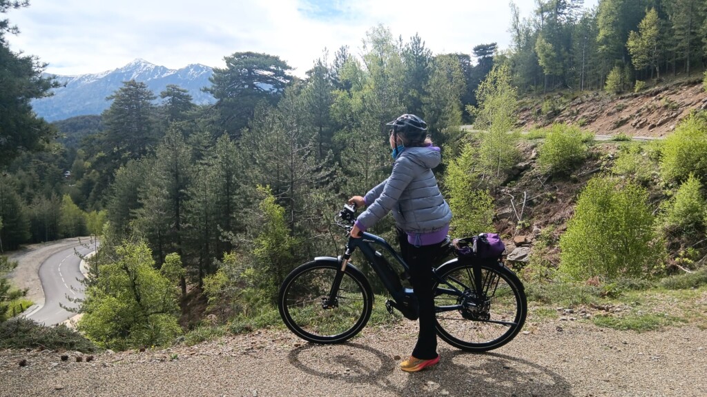 Ci svegliamo un po’ tristi. Sappiamo che siamo all’ultima tappa del nostro viaggio. Le prime tre tappe sono state queste: Erbalunga – Saint Florent e Saint Florent – Ile Rousse, Ile Rousse – Porto. A breve dovremo salutare le splendide compagne di avventura, le nostre e-bike, ma lo faremo dopo quella che si preannuncia essere una super tappa di 51 chilometri. 145 invece saranno i chilometri percorsi dai ciclisti nella quarta tappa della CORSICA CYCLO GT20. Da Porto con il pulmino in circa mezz’ora lasciamo il mare e raggiungiamo dopo ripidi tornanti il Col de la Vierge, in corso Bocca di Verghju, 1467 metri. E’ un passo che si trova al confine fra la Corsica settentrionale e la Corsica del sud, il passo più alto dell’isola.