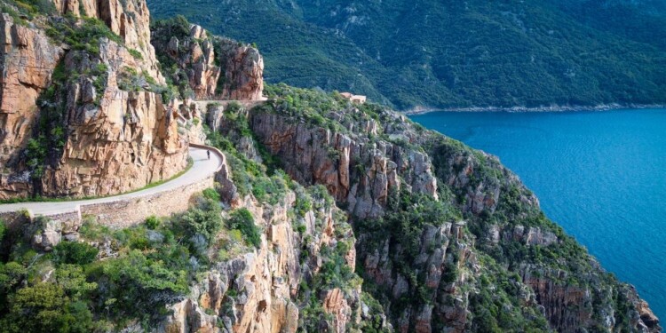 L’aria è frizzante, ci sono le mucche al pascolo, boschi di faggi, abeti, querce e agrifogli. E tronchi di legno che viaggiano in elicottero. La vetta del Col de Vierge , sempre spazzata dal vento e’ un ottimo punto di vista, perchè è spoglia, fatta eccezione per l’imponente statua del Cristo Re. Le montagne circostanti sono innevate. Ecco la rinomata Corsica montana.