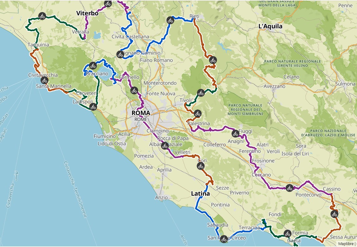 Il Gran Tour del Lazio (GTL) è molto più di un semplice itinerario cicloturistico: è un’avventura di oltre 1000 km che permette di scoprire la regione Lazio pedalando tra borghi medievali, coste spettacolari, colline ondulate e paesaggi mozzafiato. Un viaggio ad anello che parte e arriva a Roma, attraversando tutte le cinque province laziali e unendo ciclovie, cammini storici e sentieri poco trafficati, ideale per chi cerca un’esperienza di turismo sostenibile, autentica e modulabile secondo le proprie esigenze