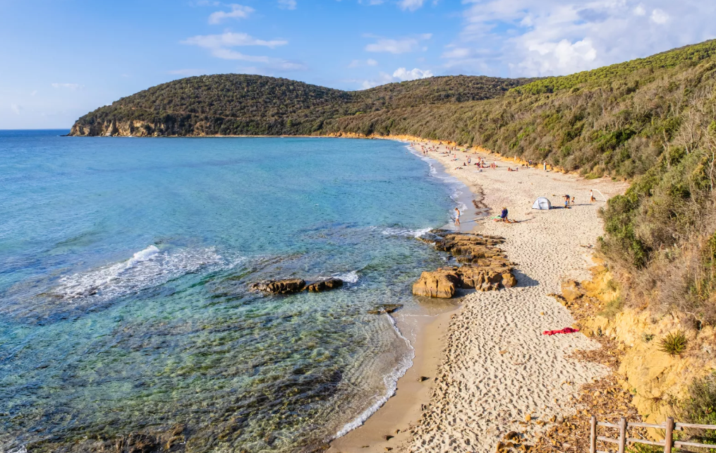 Cala Violina, una delle località più iconiche della Maremma, è famosa per la sua sabbia fine e bianca che, quando calpestata, emette un suono simile a quello di un violino, da cui prende il nome. Situata nel Parco delle Bandite di Scarlino, Cala Violina è un angolo incontaminato dove la natura si fonde con il mare in un paesaggio mozzafiato.