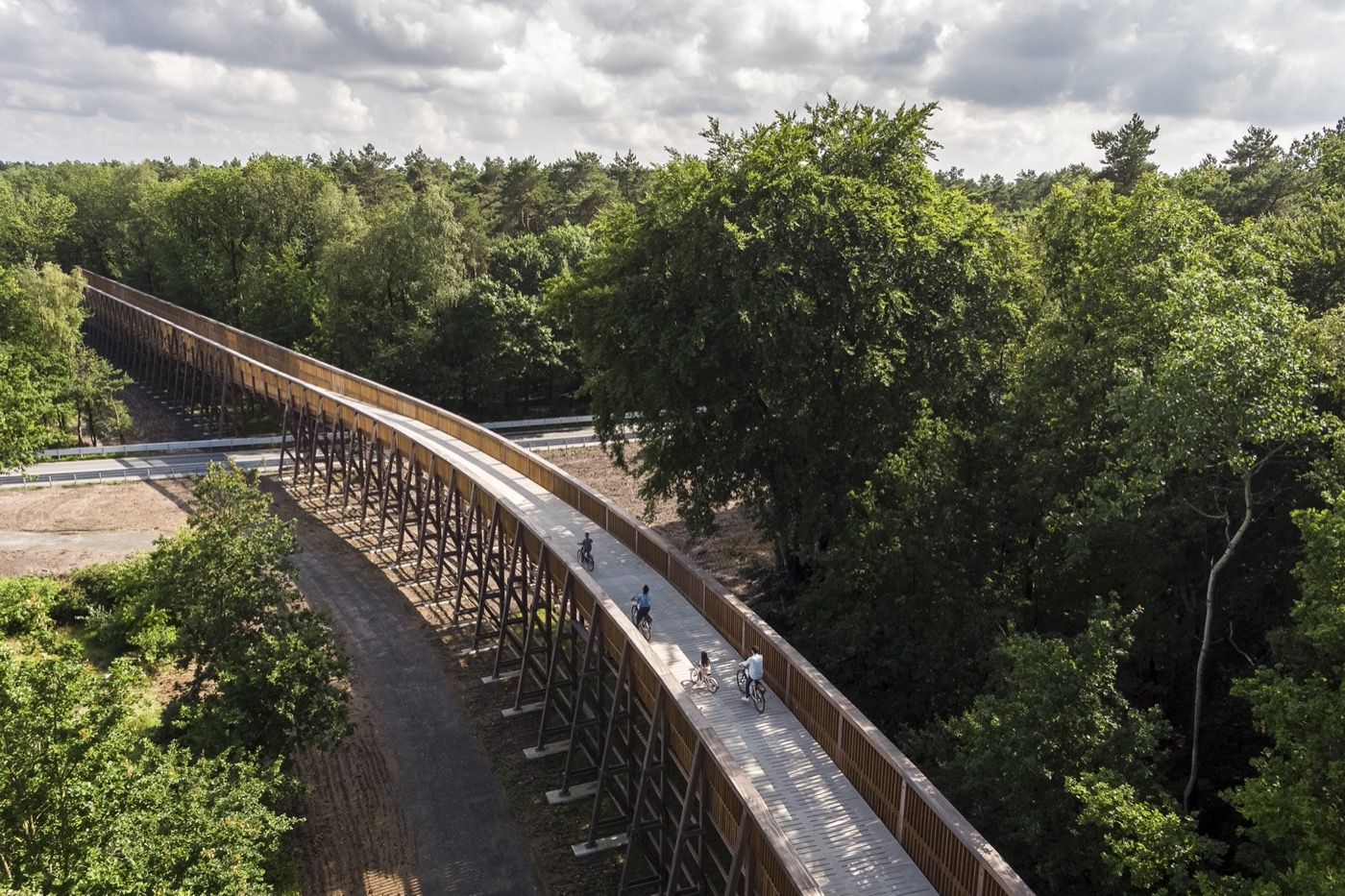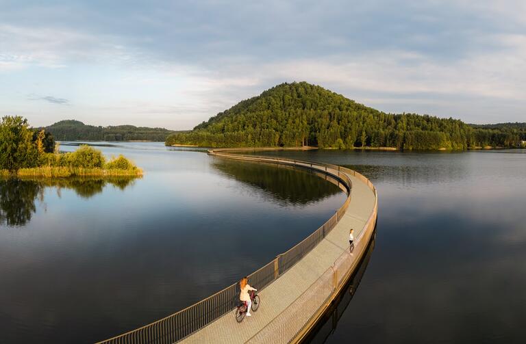 Una delle attrazioni più iconiche del Limburgo per i ciclisti è senza dubbio il progetto Cycling Between Terrils, un ponte ciclabile galleggiante che attraversa il lago Terhills nel Hoge Kempen National Park. Questo percorso unico, lungo circa 400 metri, collega due antichi terril — colline artificiali formate dai residui delle miniere di carbone del passato — trasformandoli in punti panoramici immersi nella natura. Originariamente testimonianze dell’industria mineraria del XX secolo, oggi questi terril offrono uno scenario spettacolare per chi pedala, con una vista a 360° sull’acqua e sulla vegetazione circostante. Il ponte fa parte del vasto network ciclabile della regione e può essere facilmente raggiunto seguendo i percorsi numerati o utilizzando il pratico pianificatore di itinerari online messo a disposizione da Visit Limburg.