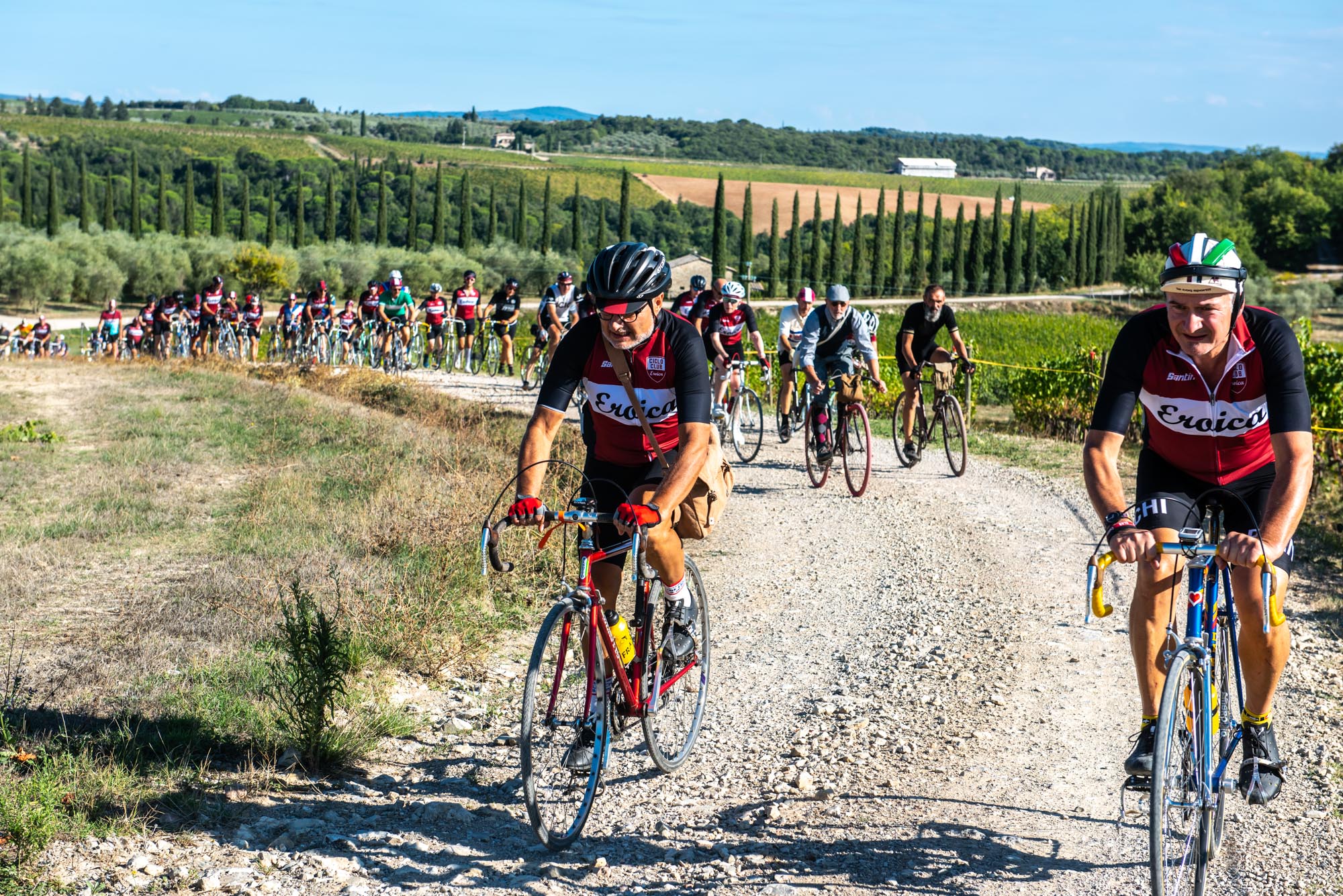 Il giorno successivo, la Gran Fondo permette agli amatori di pedalare sugli stessi sterrati dei professionisti. Due percorsi – uno lungo e uno medio – pensati per diversi livelli di preparazione, ma con un denominatore comune: l’immersione totale nel paesaggio toscano.