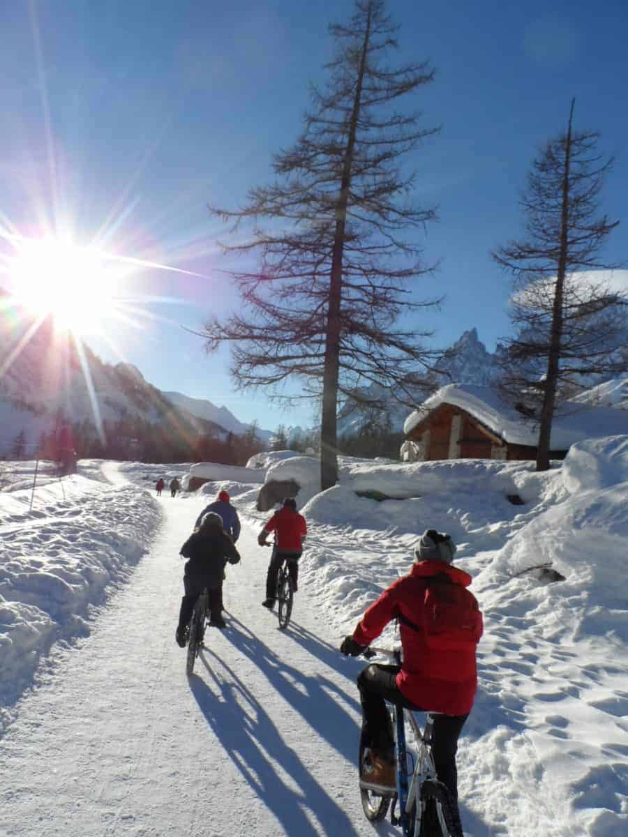 L’Italia è ricca di località che offrono percorsi dedicati alle fat bike, ormai in quasi tutte le zone dell’arco alpino e in molte aree degli appennini sono sorti percorsi per le fat bike e servizi di noleggio e guide per scoprire in tranquillità percorsi e panorami incontaminati e imparare qualche piccolo trucco per guidare sulla neve, come vi avevamo indicato in questo articolo.