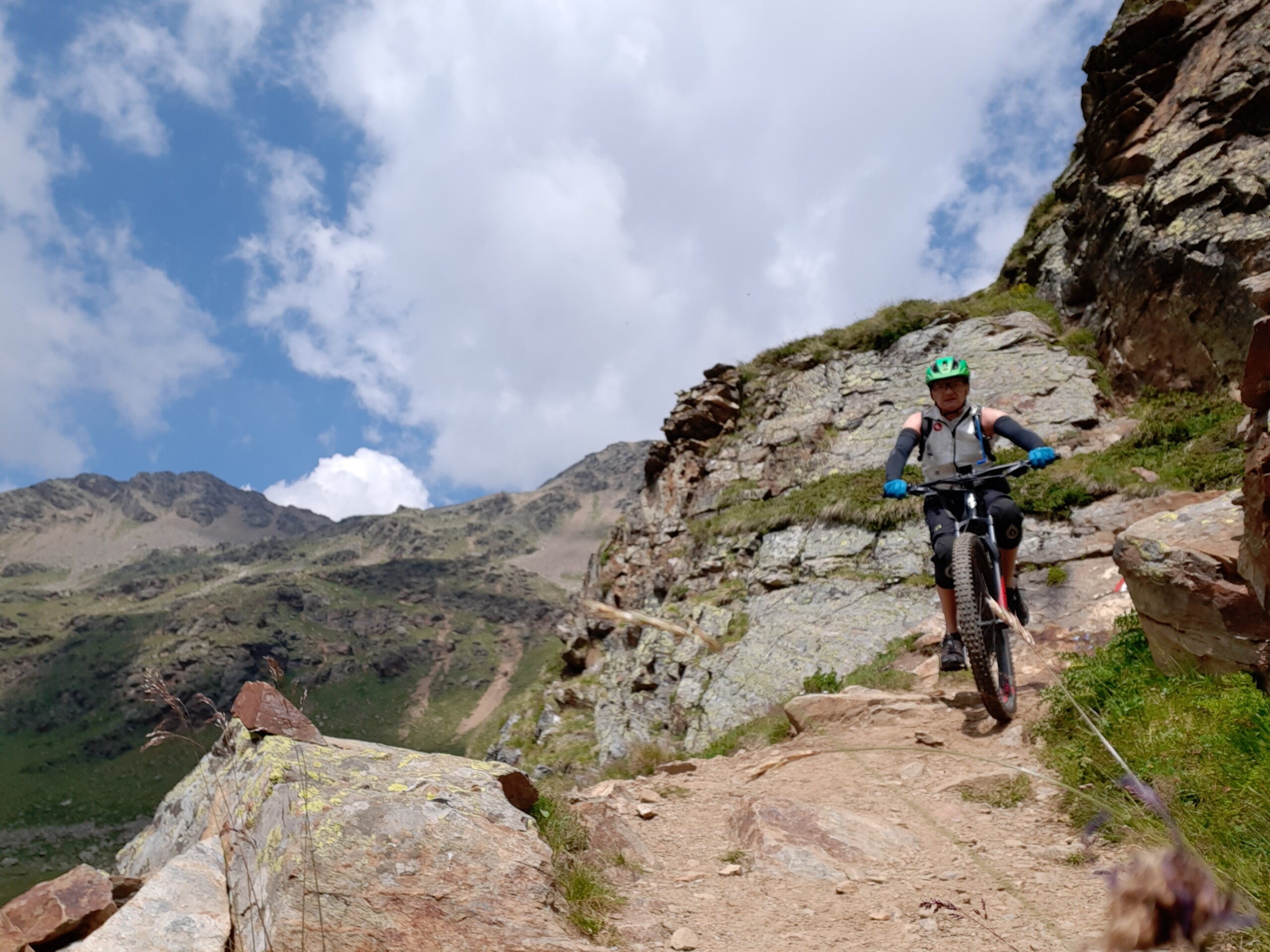 Il tratto verso Malga Fassa (2.057 m) richiede circa 20 minuti di spinta della bici lungo un canalone erboso, ma la fatica è ripagata dalla vista e dalla quiete. Poco distante, si raggiunge Malga Monte Sole Alta (2.048 m), rinomata per la produzione di formaggi d’alta quota, vera eccellenza gastronomica locale.
