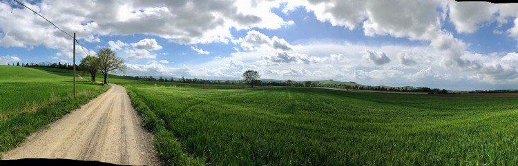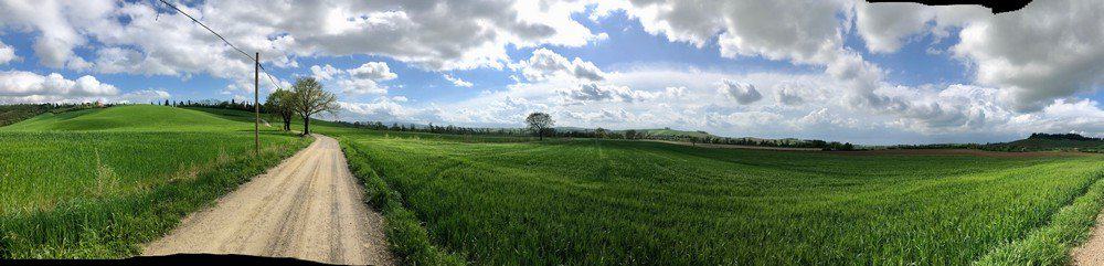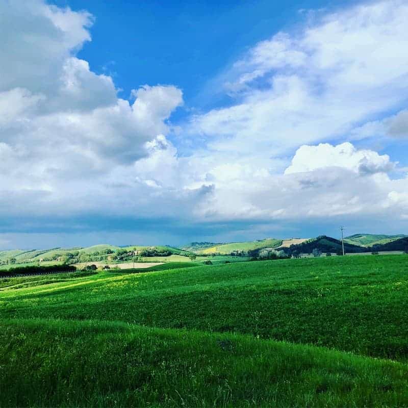 Nel frattempo, quel cielo minaccioso si stempera e ci regala squarci di un azzurro incredibile, con le nuvole che passano veloci e cambiano colore. Un cielo d’Irlanda, in Toscana.