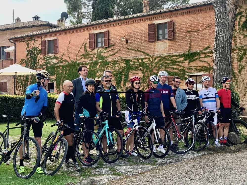 Sono abbastanza imbranata, ma il vino mi ha sciolto il coraggio, e vado abbastanza spedita per i miei standard. Ho anche l’onore di pedalare di fianco a Cunego in persona che mi corregge e tenta pazientemente di rendere la mia pedalata, se non performante, almeno decente.