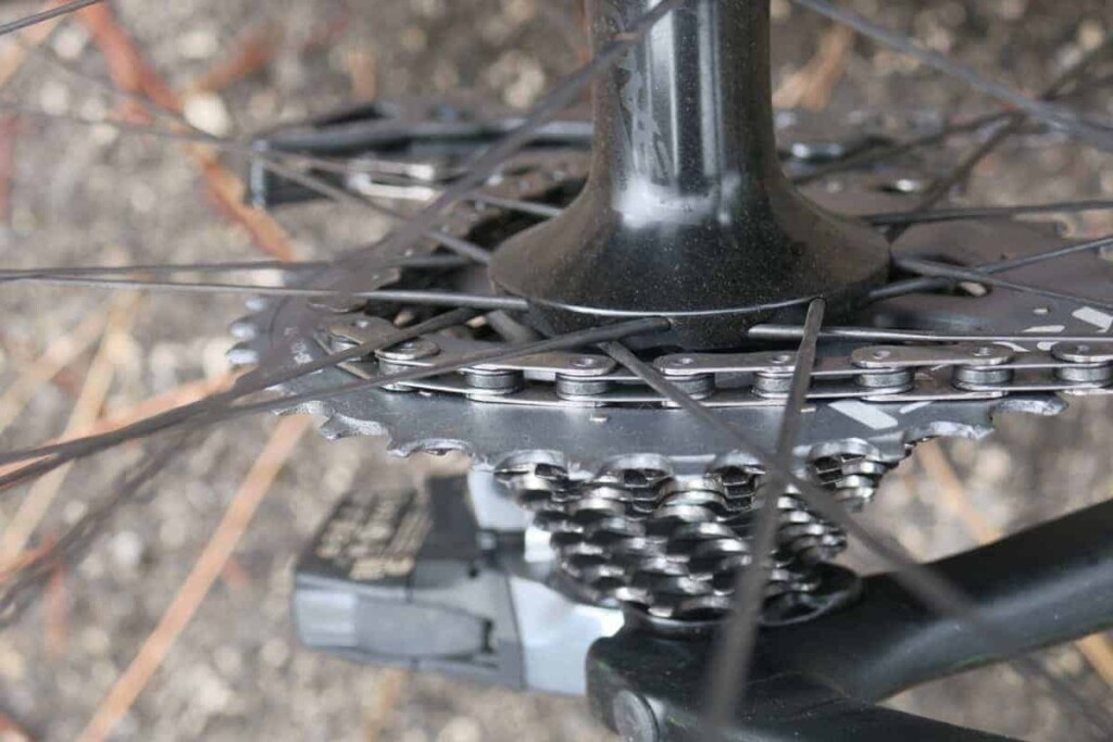Una ruota posteriore disallineata rispetto al telaio, oppure un pacco pignoni o una ruota libera che non lavorano come dovrebbero, possono causare il salto di catena (dai soli pignoni) sia tra pignoni e raggi, sia tra pignoni e telaio.
