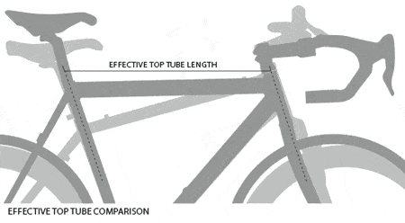 Dunque, per identificare la lunghezza di un telaio occorre sempre tracciare quella linea (reale sui telai con geometria tradizionale, virtuale sui telai sloping) attraverso cui il tubo superiore unisce il tubo di sterzo e il tubo verticale.