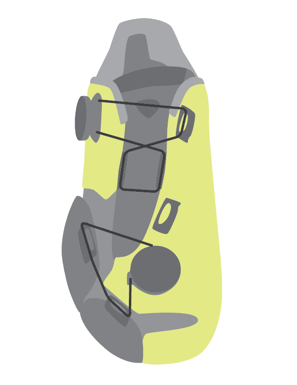 Piuttosto che ai lacci (confinati a modelli di fascia economica oppure ad alcuni per la mtb free ride), per la chiusura le moderne scarpe di ciclismo si affidano più spesso a fasce a strap oppure a speciali rotori vincolati a lacci che consentono di regolare micrometricamente la ritenzione.