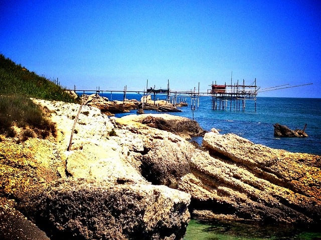 Tra le meraviglie che offre l’Abruzzo della Bike to coast da Ortona a San Salvo, nella parte più a sud, non si vive solo la poesia del lungomare su cui avanzare a colpi di pedali, ma anche la storia di un popolo legato alla pesca. Vi si trovano i trabocchi, agili strutture in legno simili a palafitte con grandi reti a bilancia. Queste macchine da pesca narrano il fascino primitivo di un territorio devoto al mare e ai suoi frutti. Pare che i primi “traboccanti” però non fossero uomini di mare, ma per lo più legati all’agricoltura. Dalla loro intuizione, che evitava i rischi di scendere in mare aperto, nacque una tradizione approdata ai giorni nostri di generazione in generazione. È possibile ora visitare alcuni trabocchi, ascoltare la loro storia e assaporarne il pescato fresco.