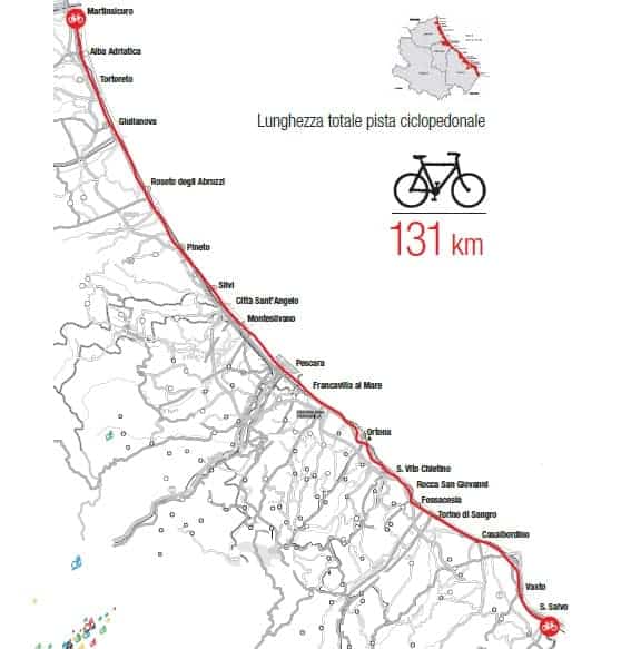 E’ il progetto di una strada nuova per il turismo sostenibile abruzzese. Un’idea improntata alla mobilità dolce, oltre alle già rodate mountain bike che si inerpicano sull’Appennino tra le bellezze dei parchi nazionali. Si tratta di una ciclovia dal chilometraggio ambizioso, lanciata nel 2013 per unire sotto l’egida del cicloturismo tutta la costa dell’Abruzzo, da Martinsicuro a San Salvo, dalla provincia di Teramo a Chieti, passando per Pescara.