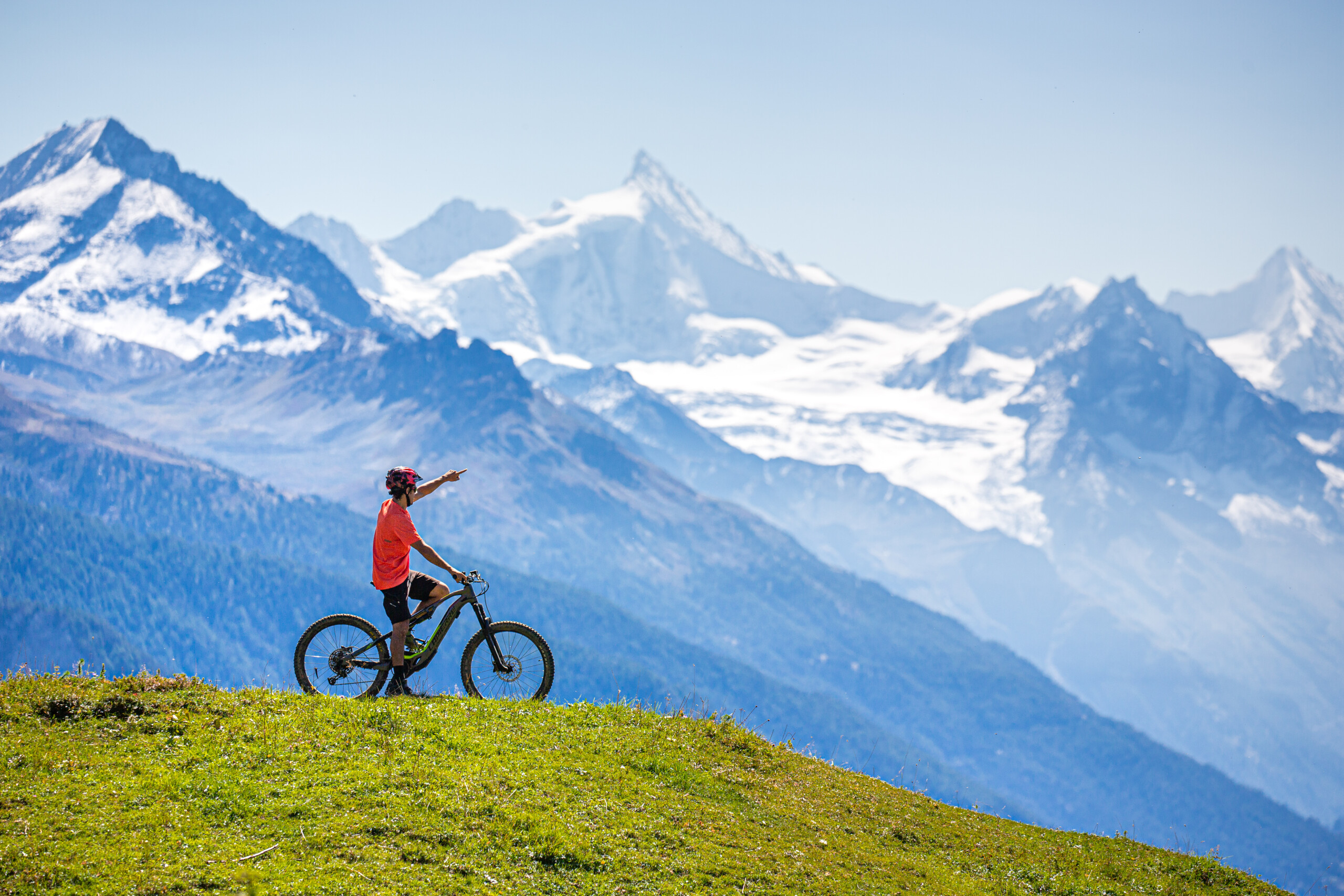 Stephane mi racconta che c’è una grande varietà di itinerari per mtb, per tutti i livelli di preparazione. I più semplici sono il Brisses Bike di 5 km, l’ideale per una prima uscita dopo un periodo di inattività, e il Cry d’Er Bike di 7 km che prevede l’utilizzo della telecabina per raggiungere la vetta e pedalare fra praterie e boschi alpini alla scoperta di Chetzeron, Corbyre e L’Amouva. Ma ci sono anche giri più impegnativi, come il Valais Panorama Bike che attraversa alpeggi isolati per 26 o 30 km, oppure il CM Bike Marathon di 49 km che è consigliabile ai biker esperti e allenati.