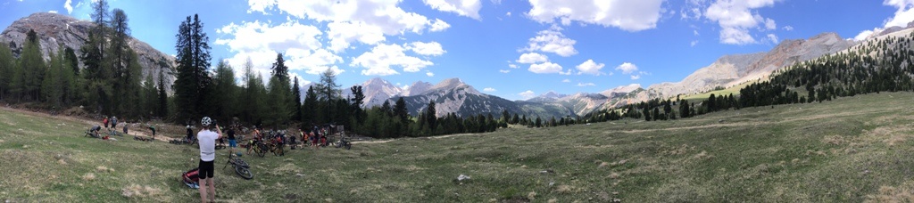 La fatica viene premiata dalla bellezza del pianoro dove sorge il rifugio Fodara Vedla, anche lui nato durante la prima guerra mondiale. Le nostre ebike, vengono affidate ai vari team per il controllo, mentre noi ci affidiamo alle cure dei gestori del rifugio per il pranzo. A detta di Bruno, grande esperto di Strudel, qui si mangia uno dei migliori dell’Alto Adige.