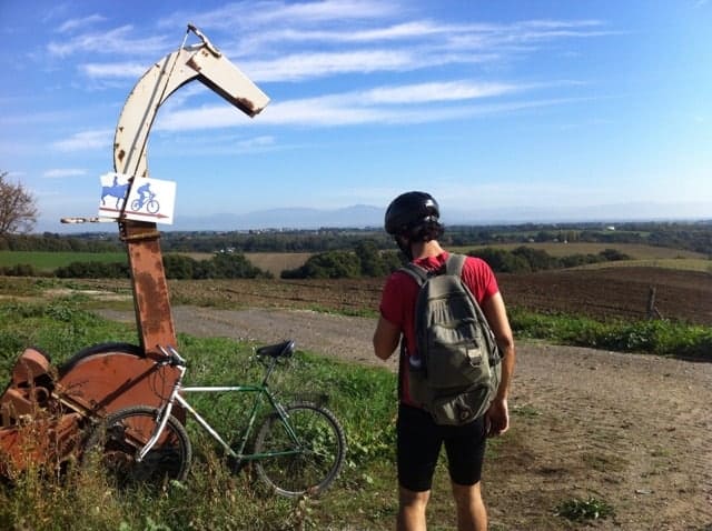 Il problema principale del cicloturista capitolino è la fuga dall’Urbe: servirsi di un treno, oppure trovare un percorso sicuro dal traffico veloce delle consolari in uscita dal centro? Quest’ultima soluzione si presenta spesso difficoltosa per la scarsità di passaggi, bisogna muoversi come un’anguilla per districarsi lontano dalle arterie maggiori e cercare la Natura nella paziente tortuosità delle strade secondarie o dei sentieri: sotto questo aspetto, il ciclista è davvero un pellegrino dell’urbanistica, un pacifico reietto di una società autocentrica, che conserva a tutti gli effetti qualcosa dello spirito dei pellegrini – religiosi e non – d’un tempo, che attraversavano l’Europa per giungere nella Città Eterna attraverso la via Francigena.