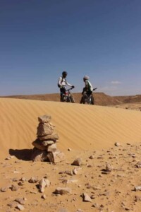 Ride in the desert is one of the strongest feelings that you can try if you love cycling and try an absolute size. For those who have never had the chance the desert is all considered equal and monotonous. It is exactly the opposite. The views are rugged, made of reddish mountains that change shape and color as it moves forward, alternating rocky wadi, the ancient river beds dried up, and trails that spread in flat trails with compact sand until you find the dunes fine sand ranging circumvented because no wheel, including 4X4 car, unable to climb them.