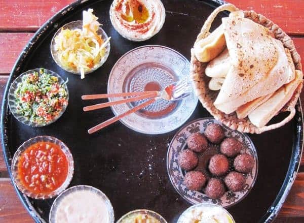 In these dinners the food is typical of the multi-ethnic cuisine with many traditional dishes Arab and Lebanese. The falafel, eaten as they use local, in warm pita and drowned nell’hummus or tahina, with or without salad or various vegetables, always abundant on the tables Israeli. or as the shakshuka, another typical dish from Israel. Permanent presence also for various types of olives, tasty, soft goat cheese or seasoned with plenty of olive oil. Foods are very tasty and fragrant, which are suitable to be combined with each other with ease, ideal for when you are hungry after a day of cycling. Even the coffee is an original experience: done squat, with the dust that settles on the bottom after boiling, but the mixture also includes a certain amount of cardamom that gives a perfume a little ‘sweeter but nice after unusual flavors.
