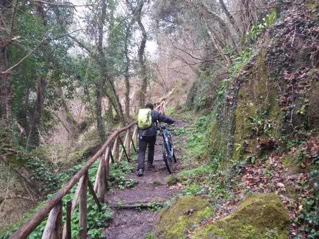 Si tratta di un percorso piuttosto sconnesso, che mischia ampi vialoni sterrati a tratti scoscesi e scalini di legno, in cui è necessario scendere dalla bici, a meno che non siate esperti biker; in ogni caso, la mountain bike è d’obbligo, e il fango sempre in agguato. Ma le asperità del terreno sono poca cosa, specie a fronte delle bellezze naturali di cui è ricca questa zona.