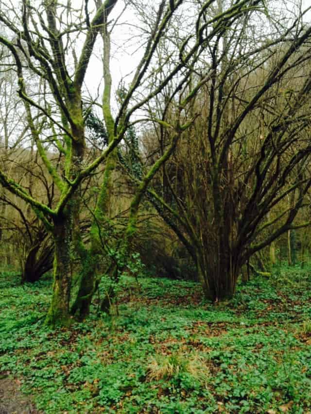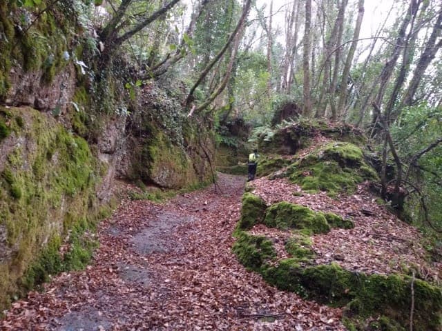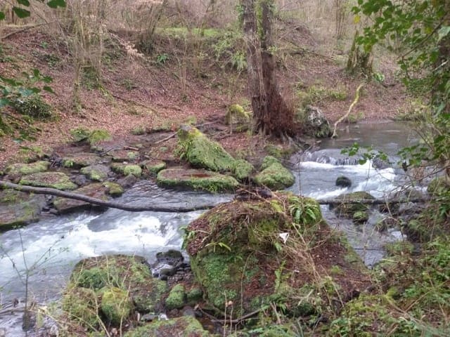 Una volta passata la provinciale di prima, se ci teniamo ancora sul lato sinistro del Treja come da traccia gpx ci ritroviamo in un boschetto che sembra davvero uscito da un luogo ancestrale e fiabesco: i colori vivi danno un’atmosfera surreale a queste poche centinaia di metri che vale la pena percorrere col fiato sospeso. colori irreali.