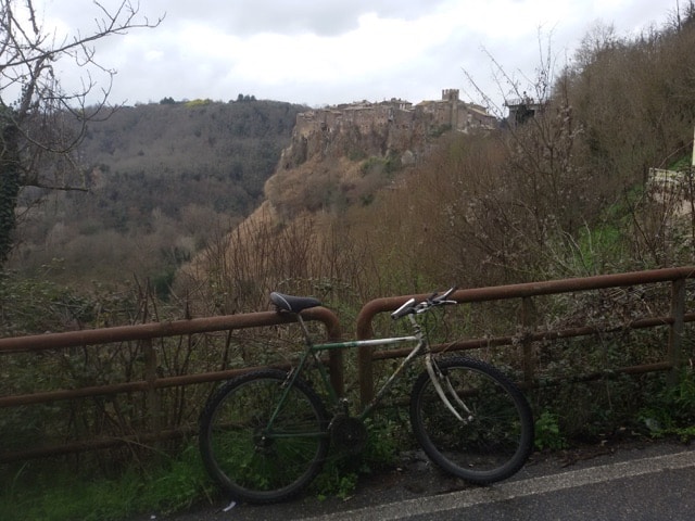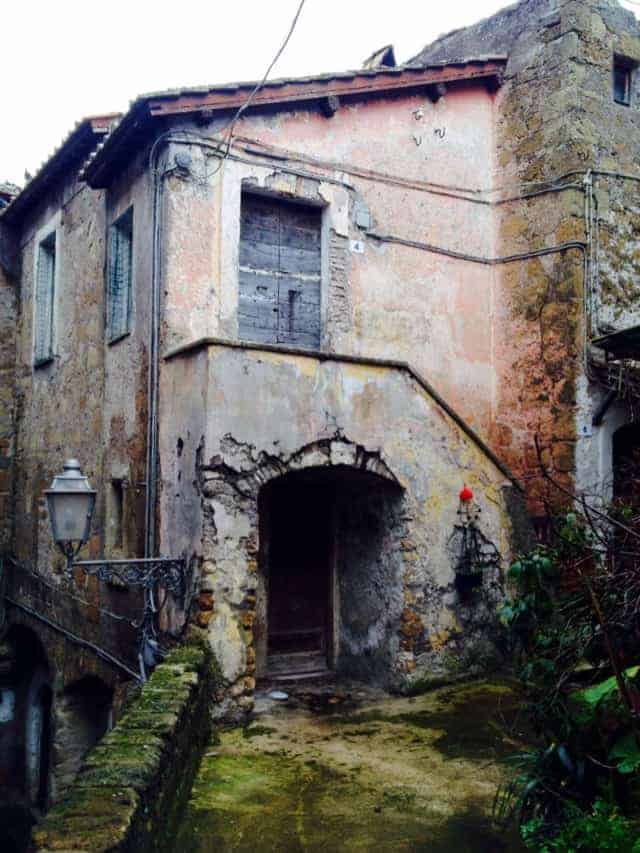 Giunti all’incrocio con la provinciale asfaltata, la seguiamo per circa un chilometro per guadagnare quota e l’ingresso del borgo di Calcata: la sua silhouette inconfondibile e mistica, che si rivela sempre un po’ a fatica strappandola alle nebbie della vallata, è adagiata su un unico, enorme blocco di tufo, isolandola quasi dal resto del mondo.