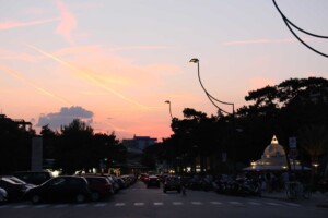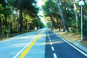 Sul lungomare ciclopedonale Kechler il ritmo è frenetico e la bicicletta – in alta stagione – è costretta a una gincana continua tra i turisti. Qui si cambia musica: sono le hit estive e i decibel crescenti a farla da padrone. Proprio di fronte al cuore della vita notturna lignanese, il Tenda bar, una pausa curiosa è all’atelier di Wilfred Kappa, che espone la sua arte da due vetrine ricoperte di salso affacciate sul mare. Colori e forme rimandano a terre lontane, sfuggono alle convenzioni come l’artista, che quando non c’è ama appendere alla porta un inusuale cartello: “Sono sul catamarano”. Qui è meglio andare a passo d’uomo finché non si raggiunge la nuova pista ciclabile che collega Lignano Pineta a Sabbiadoro. Immersa nel verde, ampia e asfaltata, è un ottima alternativa al vecchio e trafficato viale Centrale.